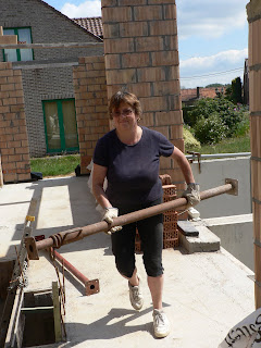 2) Steunen worden uit de kelder gehaald zodat deze klaar liggen om te zetten als de predallen voor het 1ste verdiep kunnen komen